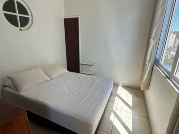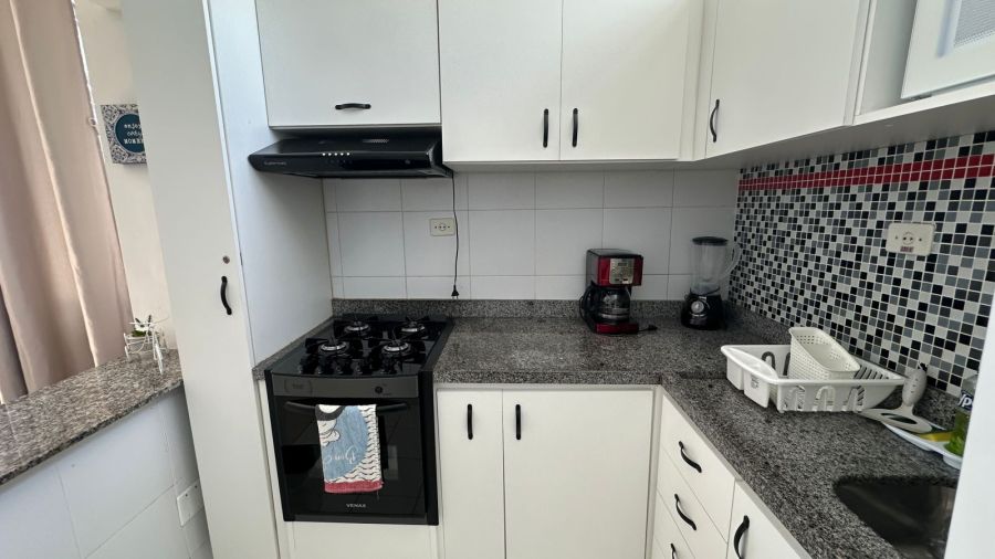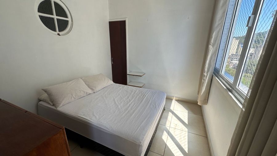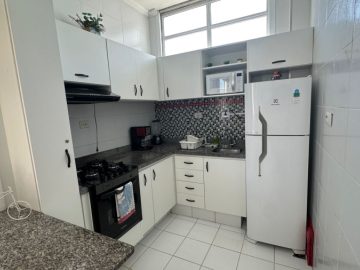 Com 47m² de área privativa, no 9º andar, uma suíte + quarto de empregada, sala, cozinha.
