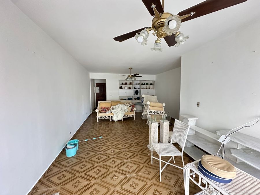 Com 3 dormitórios, sendo 1 suíte, 3 banheiros, sala, sacada com vista parcial para o mar, cozinha, área de serviço, dependência de empregada e 1 vaga de garagem.