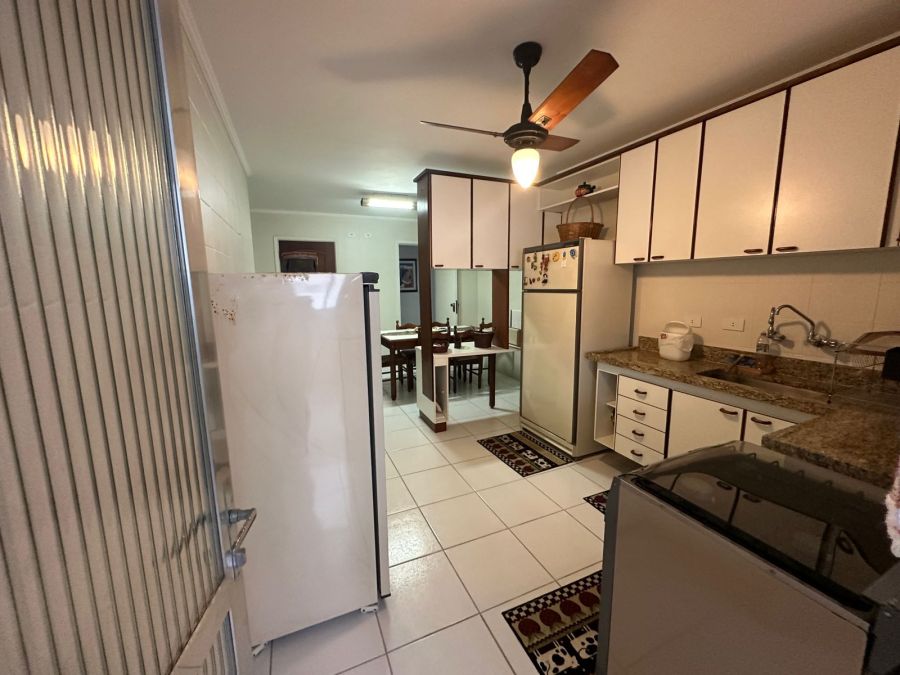 São 3 dormitórios, sendo 1 suíte, cozinha, sala, sacada com vista parcial para o mar.