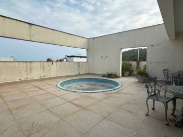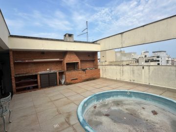 Cobertura com 230m² de área útil, 03 dormitórios, sendo 01 suíte, sala 02 ambientes, sacada, cozinha com armários, 03 banheiros, dependência de empregada, área de serviço, 02 vagas de garagem. O imóvel também possui churrasqueira e piscina.
