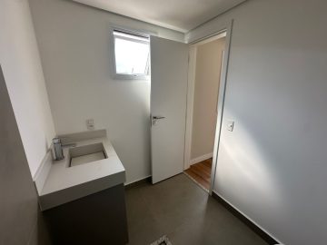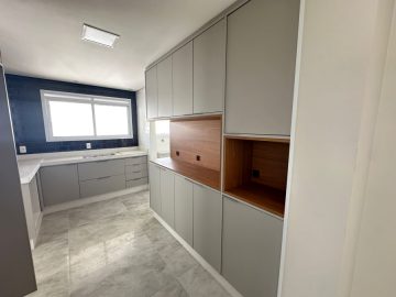 Sala de jantar, sala de TV, varanda ampla em L totalmente envidraçada, 3 suítes, cozinha, área de serviço, banheiro de serviço, 5 banheiros no total.