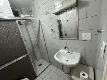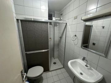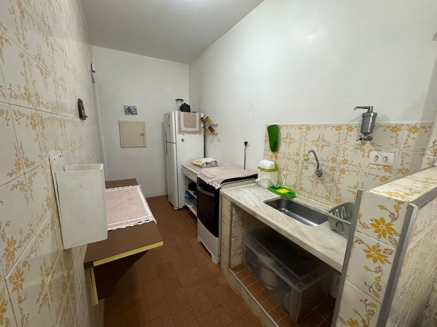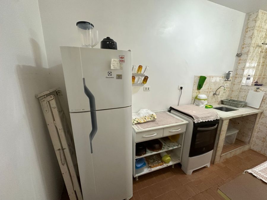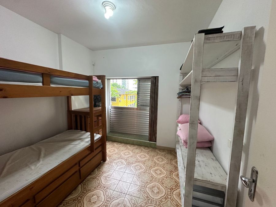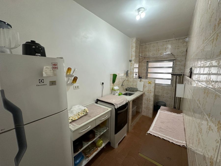 Prédio com elevador, portaria 24 horas e serviço de praia.