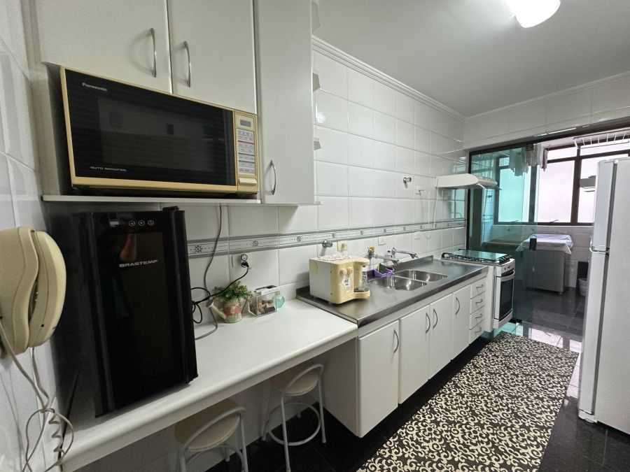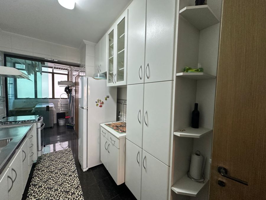 Sala 2 ambientes com acesso a sacada, 2 dormitórios sendo 1 suíte + 1 dormitório de serviço, 3 banheiros (suíte/social/serviço) cozinha com gás encanado, 2 entradas (social/serviço), lavanderia e 2 vagas de garagem.