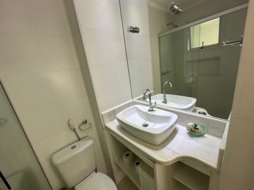 O apartamento está semi mobiliado e tem o acabamento de primeira, com pisos em porcelanato