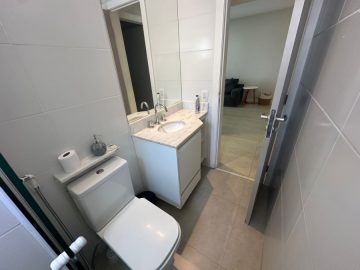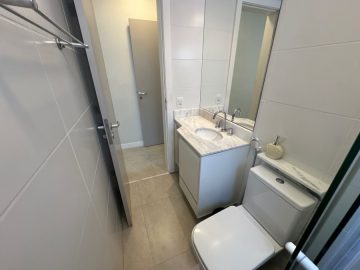 Varanda, sala para 2 ambientes, 2 quartos sendo 1 suíte, banheiro social, cozinha com armários, lavanderia.