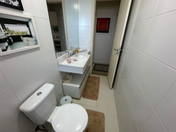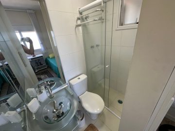 - O banheiro da suíte 2 tem pia de vidro e box blindex