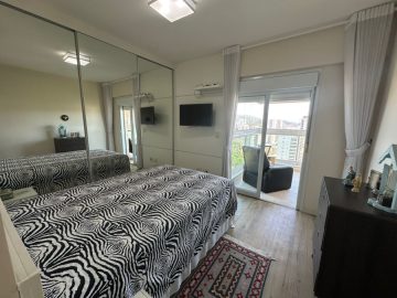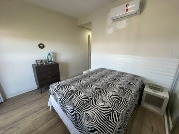 - Suíte 1 com cama de casal, armários, ar condicionado e saída para varanda