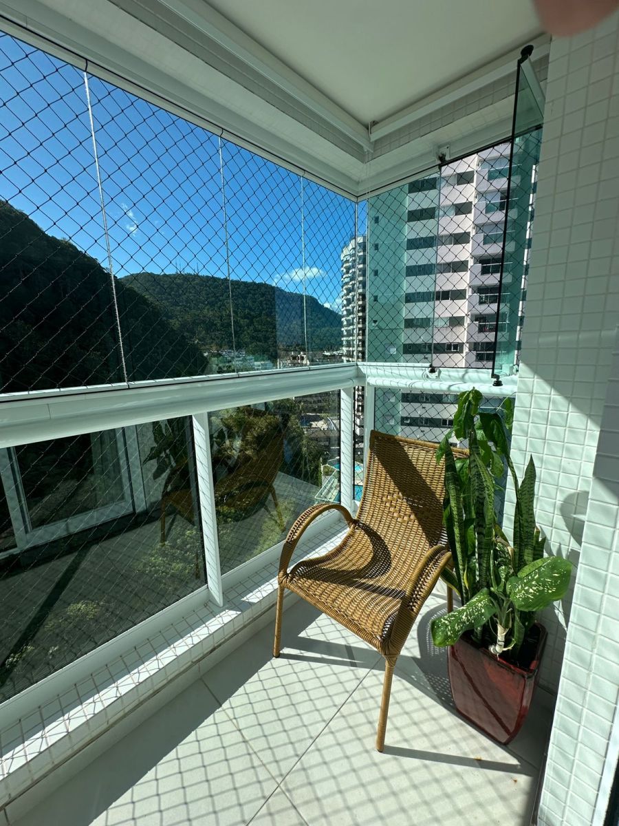 Fechamento de vidro e rede de proteção na varanda.