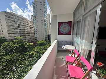 Apartamento de 123 metros de área útil com varanda, à venda na praia das Pitangueiras, Localização privilegiada, amplo confortável, conservado, claro e arejado com excelente distribuição. Confira!