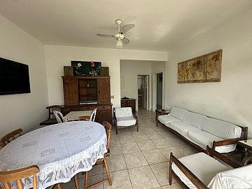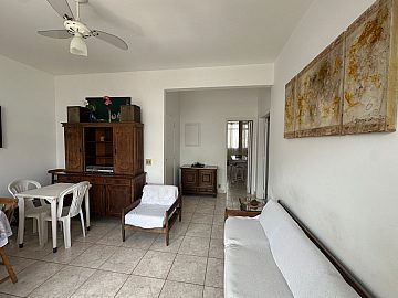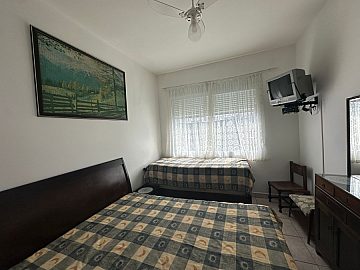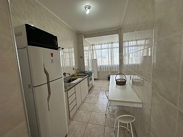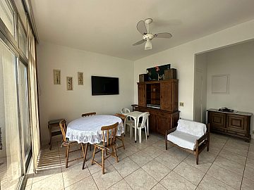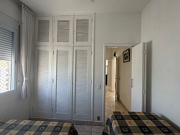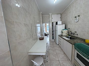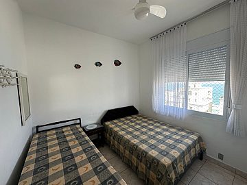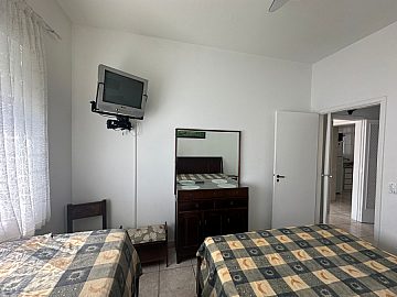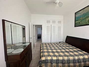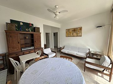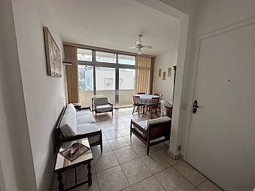 Apartamento conservado, 02 dormitórios, Dormitório de Dependência, 01 banheiro social, 01 banheiro de serviço, Sala 02 ambientes, Sacada com pequena vista para o mar, Cozinha, Área de serviço, MOBILIADO.