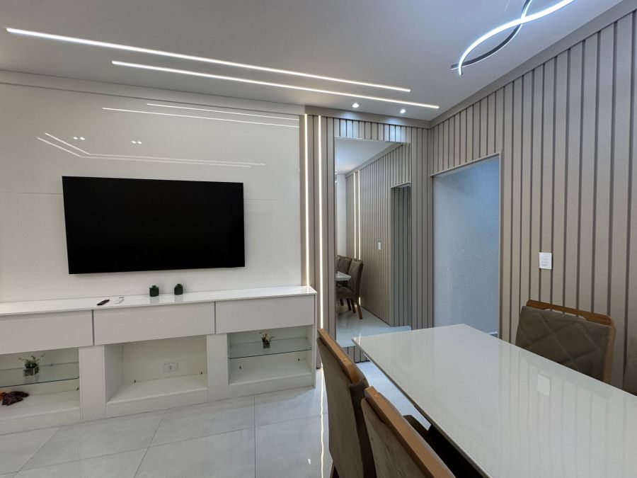 A ala íntima é composta por dois dormitórios que prezam pelo silêncio e pelo descanso. Para maior comodidade, o imóvel conta com dois banheiros e uma área de serviço completa, equipada com banheiro auxiliar, garantindo organização e praticidade para o dia a dia da família.