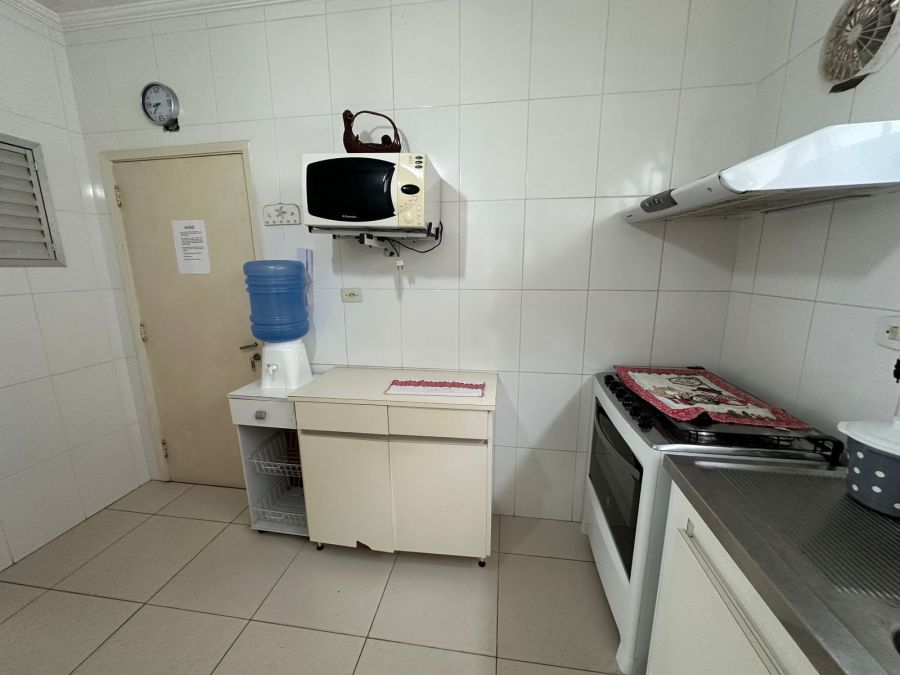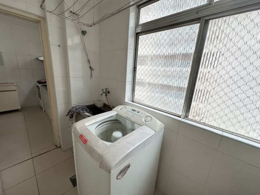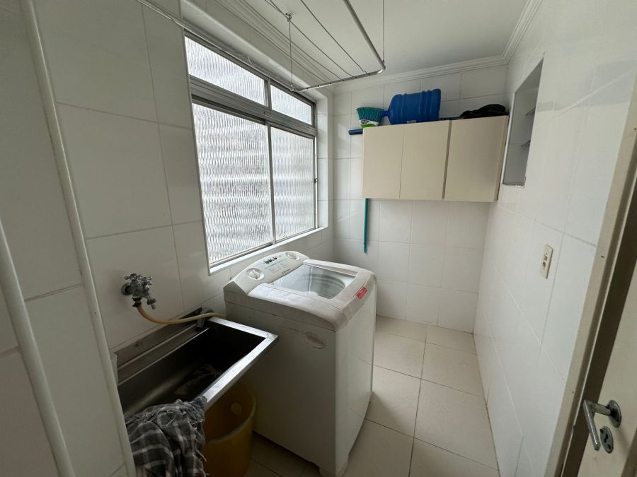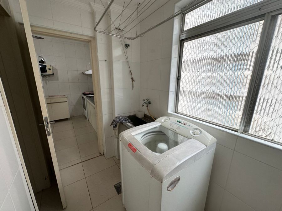 A área de serviço é completa, equipada com máquina de lavar roupa e banheiro auxiliar. A cozinha está totalmente montada com fogão, geladeira e micro-ondas, atendendo prontamente às necessidades residenciais ou corporativas.