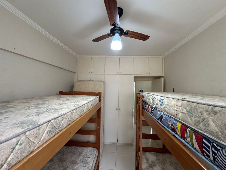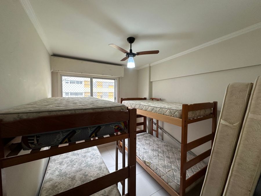 O imóvel é entregue totalmente mobiliado e equipado, contando com uma sala de estar arejada, sacada e quatro dormitórios, sendo uma suíte. No total, a unidade dispõe de três banheiros. A infraestrutura interna inclui climatização com ar-condicionado e ventiladores de teto, além de aparelhos de TV.