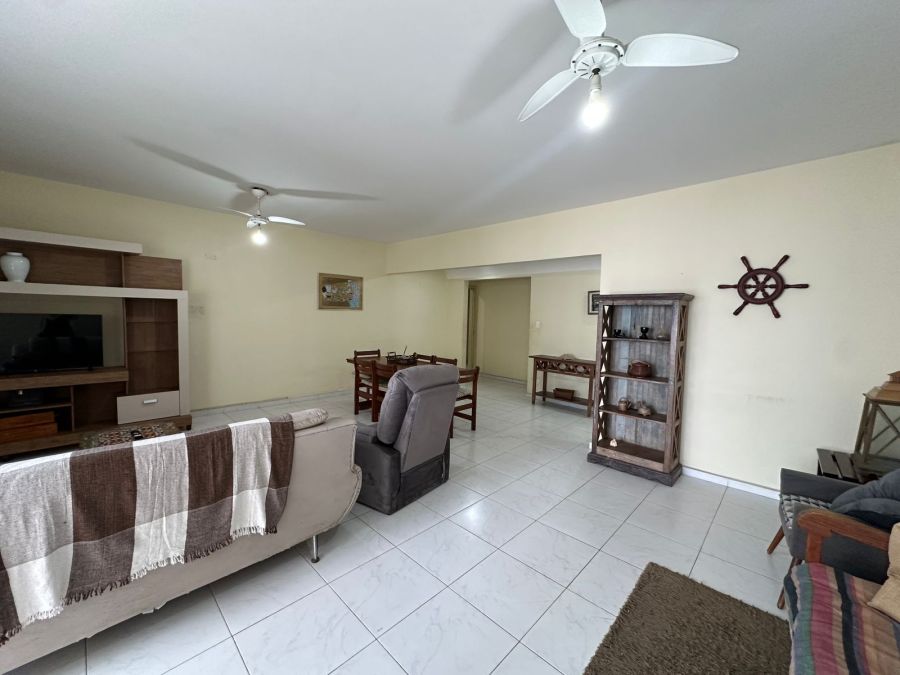 Sala ampla para 2 ambientes, sacada com vista parcial para o mar.