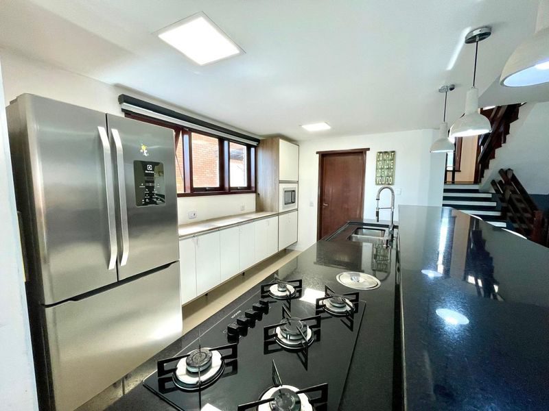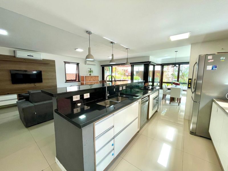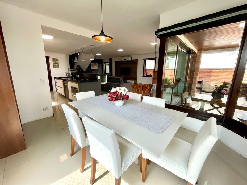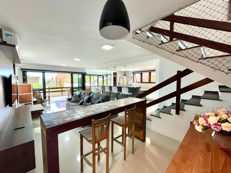Casa à venda em condomínio fechado na Praia da Enseada no Guarujá, linda vista para o mar, moderna, mobiliada, com 5 dormitórios sendo 03 suítes, sala para 03 ambientes, lavabo, cozinha americana, lavanderia, 4 banheiros. 320 m² de área | 04 vagas. Lazer do Condomínio com piscina adulto e infantil, espaço gourmet com churrasqueira, sauna, sala de descanso, sala de jogos e quadra de tênis.