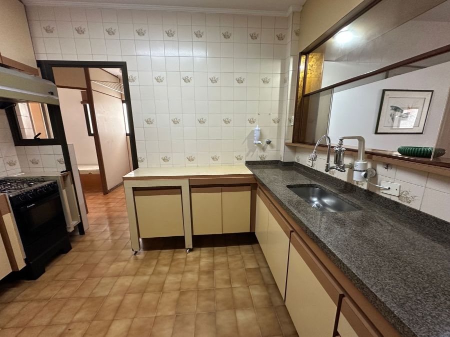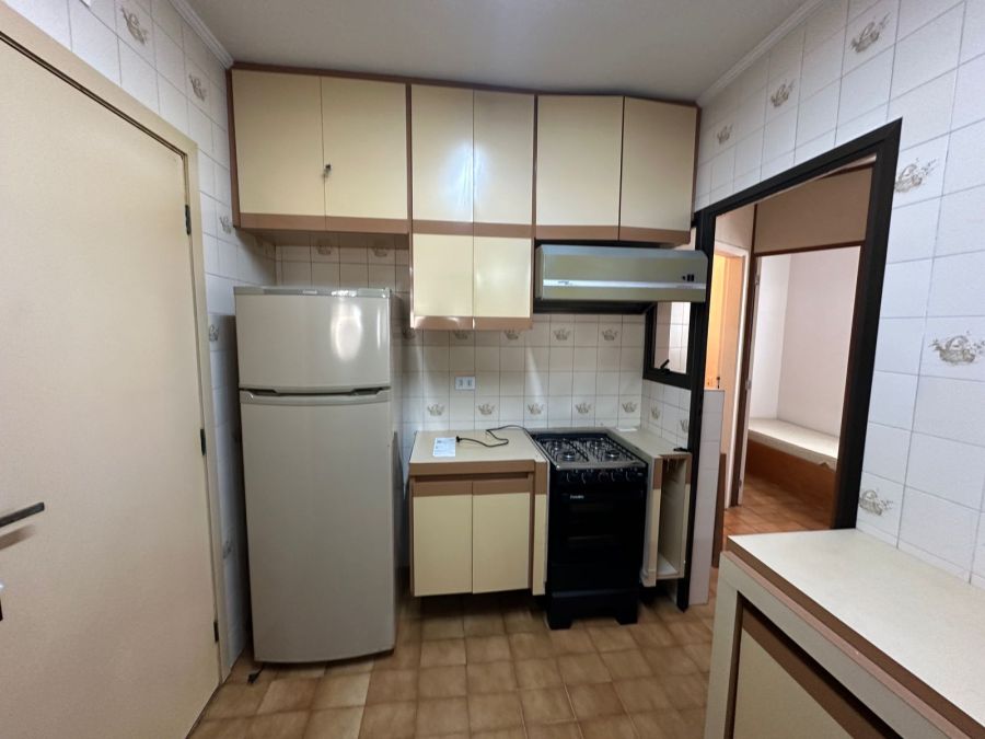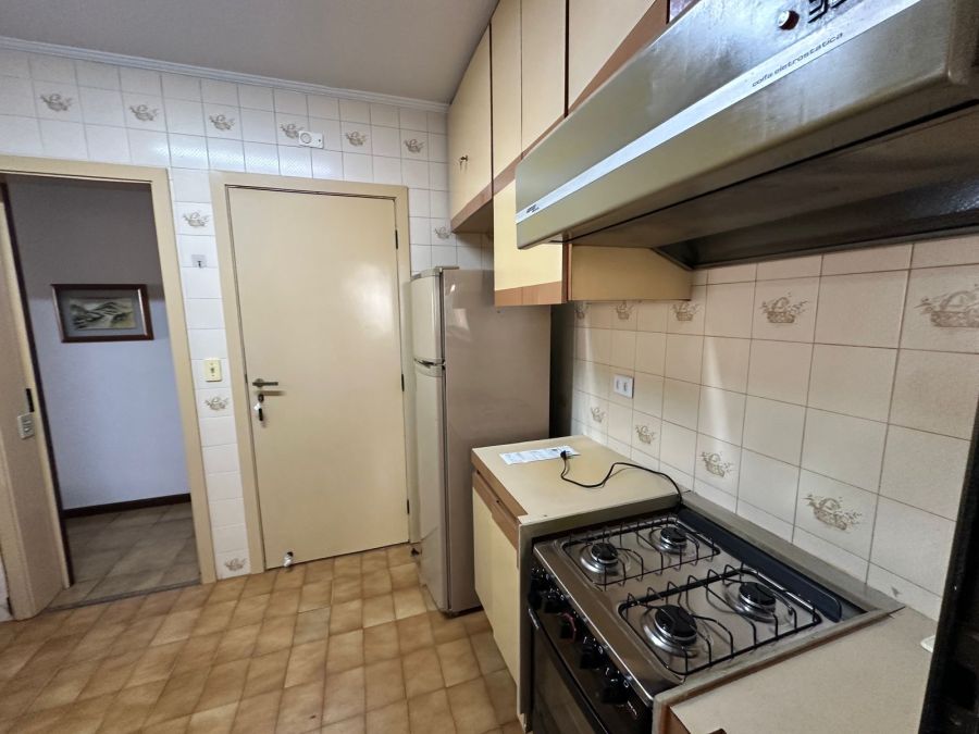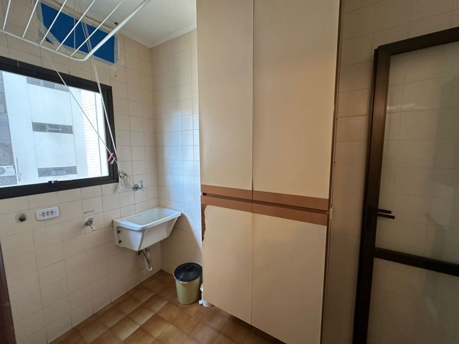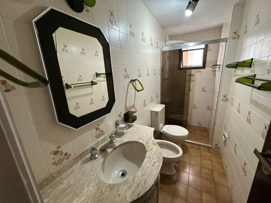Este imóvel é mobiliado, conta com 3 dormitórios, sendo 1 suíte, ar condicionado, sala para 2 ambientes com varanda, cozinha com armários embutidos, 3 banheiros, área de serviço, 120m² de área útil e 2 vagas de garagem.