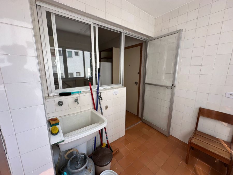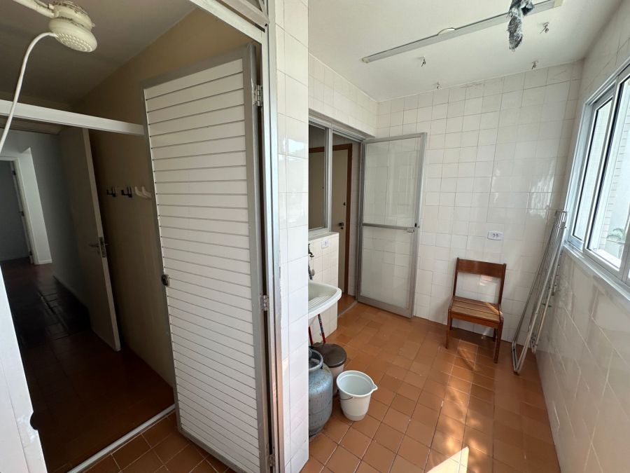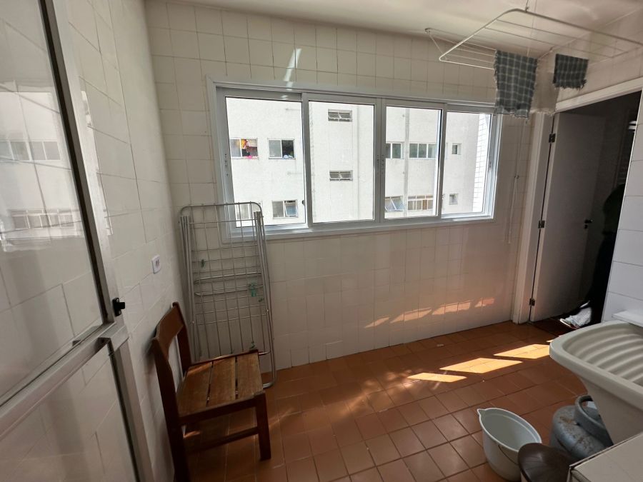 O apartamento conta com uma infraestrutura de apoio completa, incluindo área de serviço independente, dependência de empregada e banheiro de serviço. Para maior comodidade, a unidade dispõe de 2 vagas de garagem. O edifício é equipado com sistema de elevador.